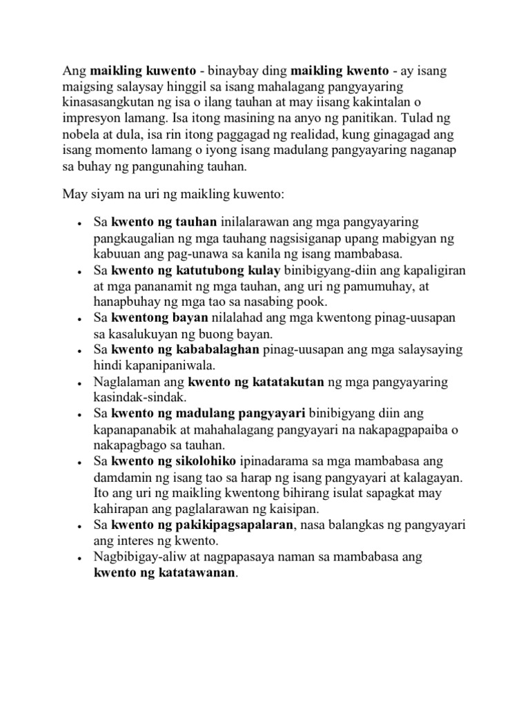 Comment s for this post Uri Ng Maikling Kwento Uri Ng Isang Panitikang Tuluyan.