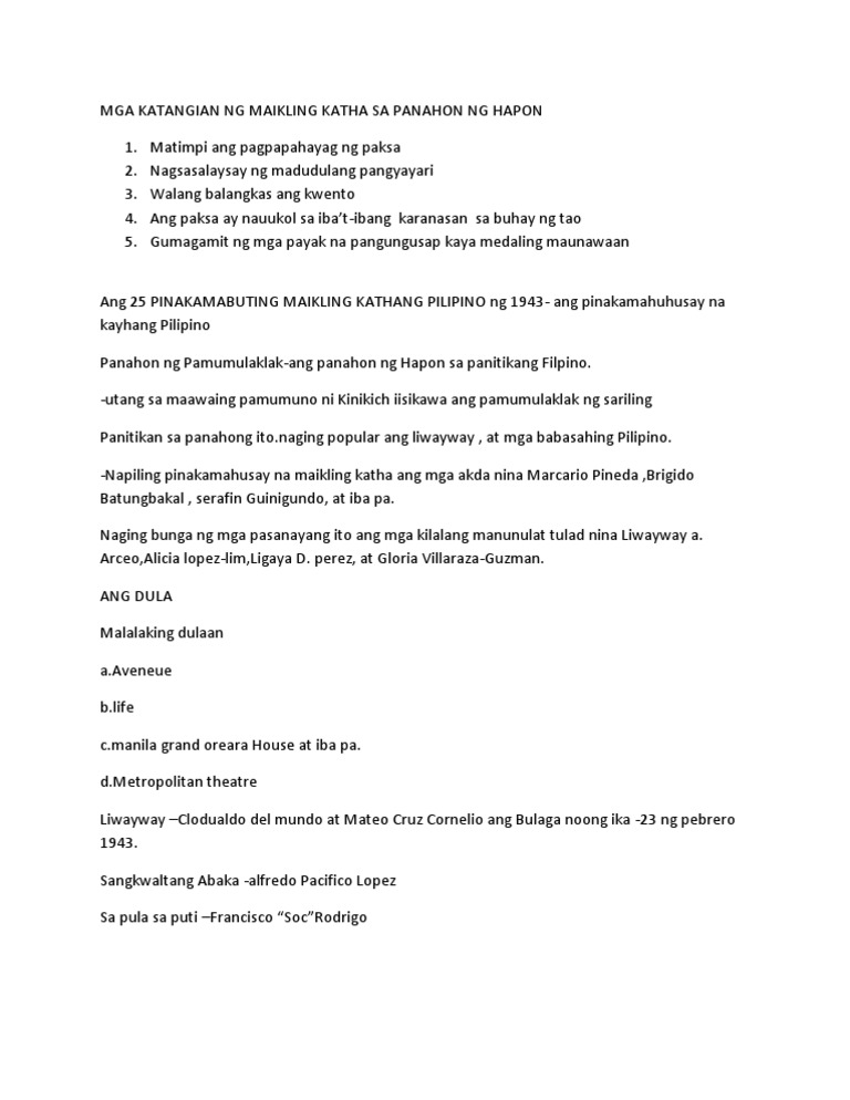 Mga Katangian Ng Maikling Katha Sa Panahon Ng Hapon Pdf
