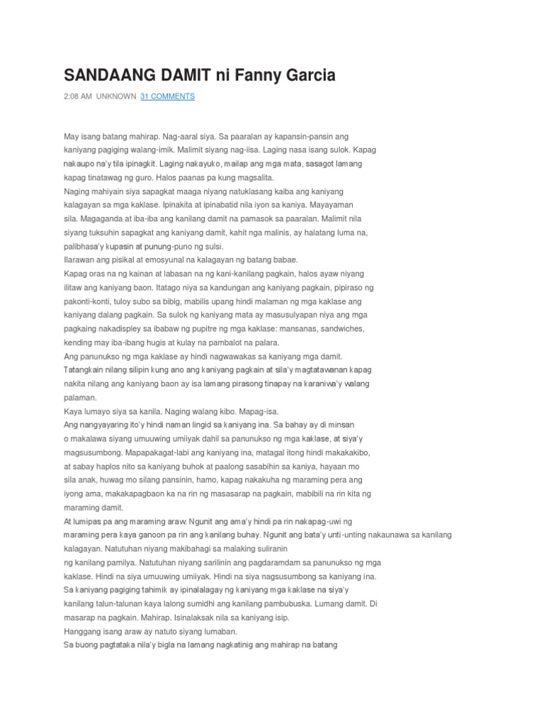 May isang batang mahirap na tahimik lang palagi sa kanyang klase. Create lists bibliographies and reviews. Isa sa nagiging kapansin-pansing kakulangan ng batang babae ay ang kaniyang mga damit.