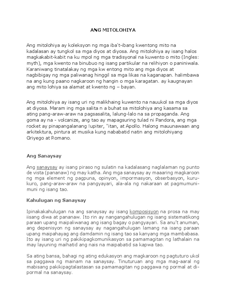Mitolohiya Sanaysay Parabula Maikling Kwento Pdf