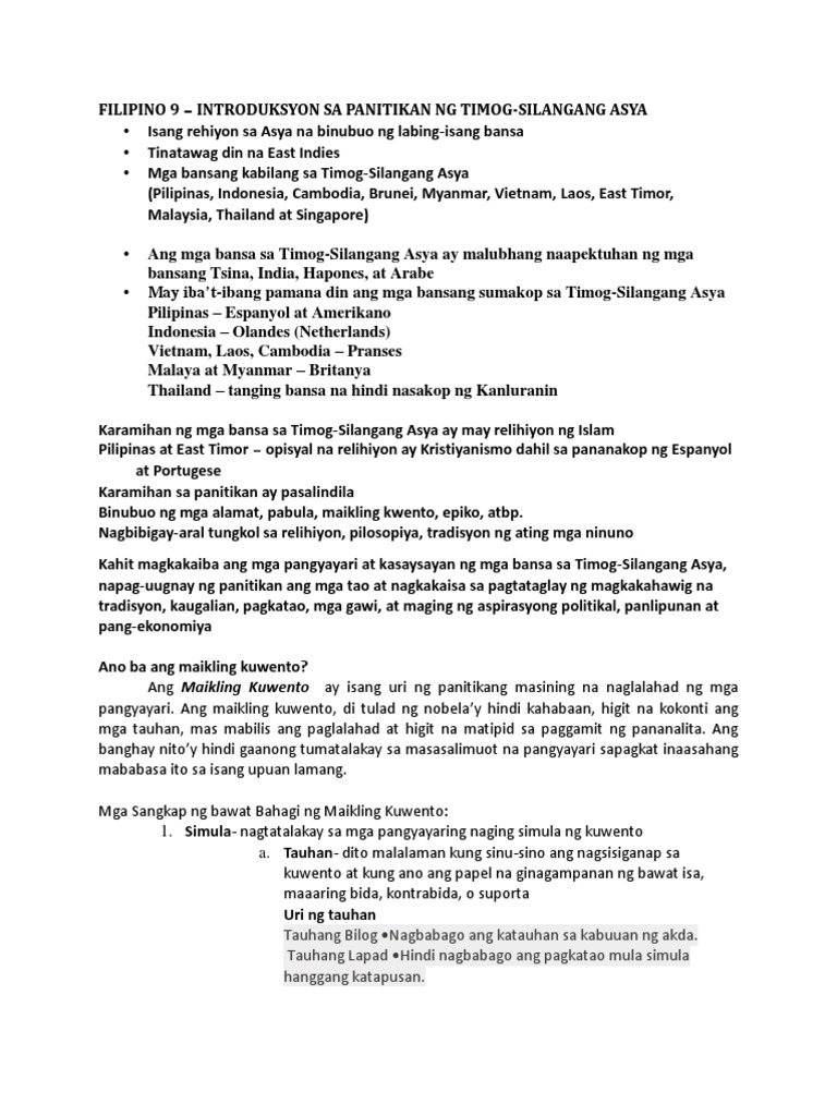 Fil 9 Modulesssssssssss 1 Odt Akdang Pampanitikan Ng Timogsilangang Asya Panimula Ang Timog Silangang Asya Ay Isang Rehiyon Na Binubuo Ng Course Hero